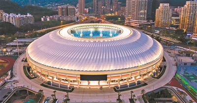 深圳市体育中心还完善了综合配套,构建城市体育新空间。主场馆改造焕新之外,体育中心还对游泳跳水馆、网羽中心等设施进行了局部修缮,并通过搭建二层连廊进一步提升了各场馆之间的连通性。同时,全新的体育中心大幅增强了综合配套服务能力,新增了深圳体育博物馆、五洲体育中心酒店、深圳赛区分媒体中心、商业服务设施以及大量地下停车位,构建一个业态丰富、功能完善的城市体育综合空间,力求为运动员和市民游客提供与“首善之区”相匹配的高规格参赛、观赛体验。