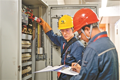 赛前,东莞供电局工作人员走进东莞篮球中心开展用电检查,保障场馆用电正常。(吴志彬摄)