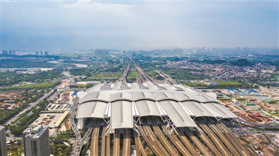 在国际铁路枢纽建设方面,广州正加快推进广州站、广州东站等改扩建,促进干线铁路、城际铁路、市域(郊)铁路、城市轨道交通“四网融合”。特别是今年9月正式开通运营的广州东环城际(番禺至白云机场北)、琶莲城际、广惠城际北延段,为广州国际铁路枢纽建设增添了浓墨重彩的一笔。