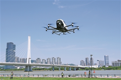 南沙灵山岛,“空中飞的”eVTOL无人驾驶飞行器飞行展示(资料图片)。广州日报全媒体记者莫伟浓 摄