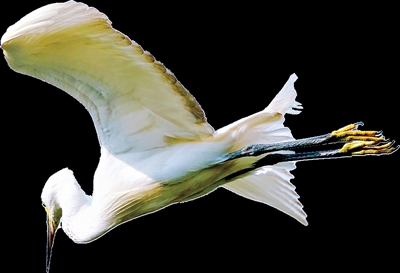一只白鹭在海心沙亚运公园空中展翼飞舞。广州日报全媒体记者莫伟浓 摄