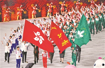 广东、香港、澳门体育代表团在入场仪式上共同入场。新华社发
