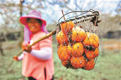一网兜沉甸甸的柿子,藏不住的喜悦。
