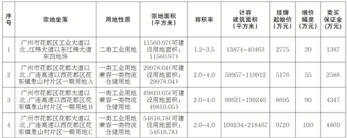 经广州市花都区人民政府批准,广州市规划和自然资源局花都区分局以挂牌方式出让4宗地的国有建设用地使用权。现将有关事项公告如下: