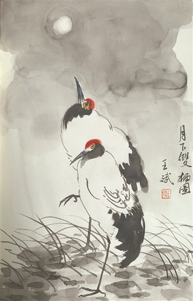 《月下双栖图》 王斌 作品