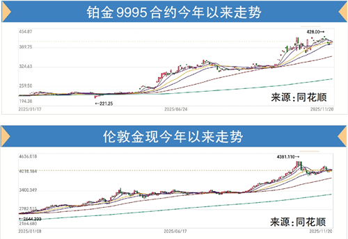 2025年前三季度数据显示,铂金表现强劲,国际现货铂金相较今年年初已累计上涨60.7%,超过同期的国际现货黄金44.65%的涨幅。截至11月20日20时20分,现货铂金报1550.5美元/盎司,日内涨幅超0.3%。