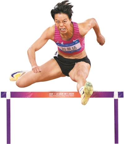 11月19日,田径项目女子100米栏决赛中,广东女将刘景扬强势逆袭,夺得冠军。 广州日报全媒体记者苏俊杰 摄