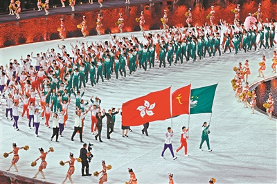 十五运会开幕式上,粤港澳三地运动员入场。广州日报全媒体记者海国、陈忧子、苏俊杰摄