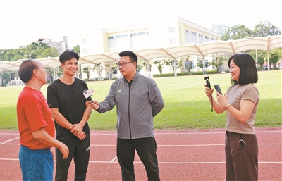 苏炳添与恩师袁国强一起接受《全运侦探》记者张喆专访。广州日报全媒体记者苏俊杰 摄