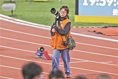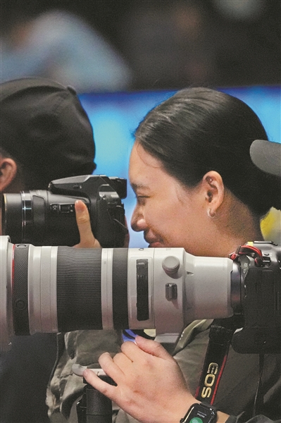 记者吴荻在比赛现场拍摄。广州日报全媒体记者雷与虹 摄