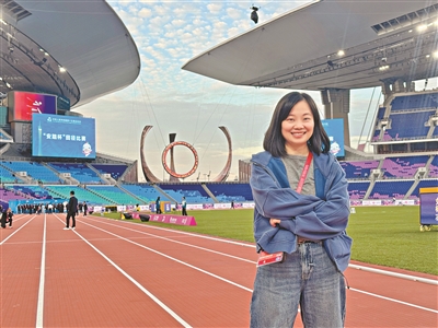 记者杨敏在赛场上留影。广州日报全媒体记者苏俊杰 摄