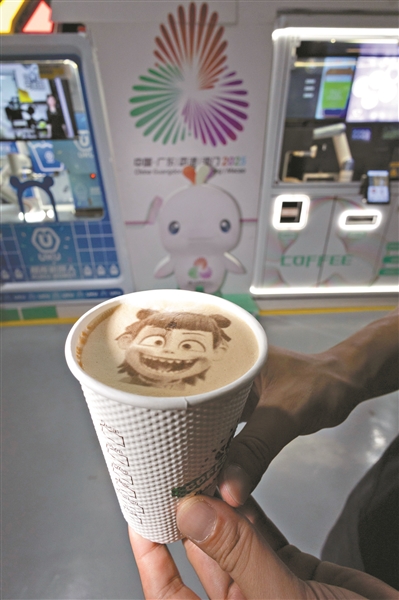 智能咖啡机器人制作的哪吒主题咖啡拉花。