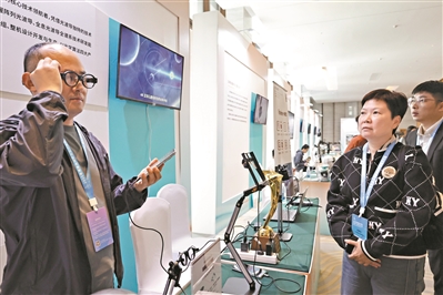 参会人员试戴AR眼镜。 广州日报全媒体记者高鹤涛、邱伟荣 摄