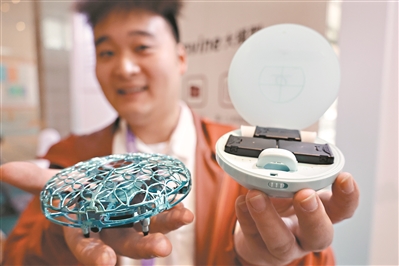 魔法飞碟使用展示(手指遥控无人机)。 广州日报全媒体记者高鹤涛、邱伟荣 摄