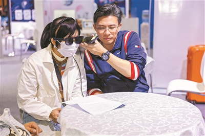 市民体验AI智能助盲眼镜。 广州日报全媒体记者李波摄