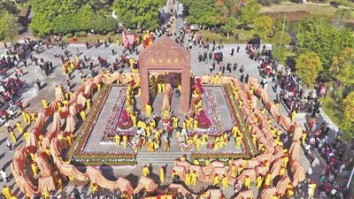 11月25日,旌旗猎猎,乡音缭绕。一条源自三千年前周朝的九十九节长龙在珠玑古巷中震撼登场,龙身绵延,气势如虹,在古老的青石板路上蜿蜒前行。非遗巡游队伍中,56人手持蕴含百家姓元素的灯笼,象征着从这里迁播全球的180多个姓氏,在光影流转中诉说着悠远的家族传奇。