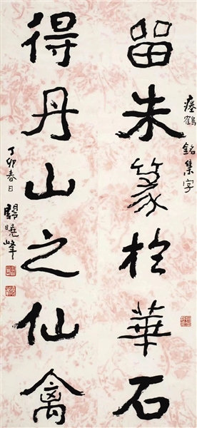 关晓峰先生(1918—2008),广东开平人,广州粤秀业余文艺学校创始人,生前为广州市文史研究馆馆员,中国书法家协会第一次全国代表大会特邀代表,广东省书法家协会顾问,广州市书法家协会副主席、顾问,广州市书法家协会副会长。先生擅长书画、篆刻,篆、隶、楷、草、行五体皆能,尤以隶书成就最高,是驰名海内外的岭南书画大家。他博采历代名家之长,又不为前人所囿,精研汉隶,熔冶出新,继承和发展了吴子复先生汉隶研究的成果,将趋于板滞的隶书写得灵动、潇洒,但又不失隶书沉稳、厚重的特质,逐渐形成了自己独特的书法艺术风格,成为继吴子复先生之后岭南隶书的典型代表人物。