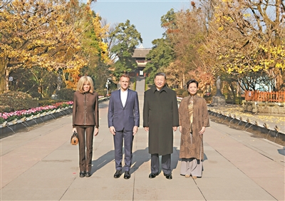 习近平夫妇邀请马克龙夫妇共进午餐,继续深入交流。