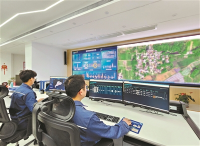 惠州惠阳供电局营配指挥中心工作人员借助智慧中台和AI数字员工进行故障定位。谢迪霏 摄