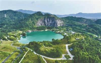 碧波如玉,功能交融,开阔而舒缓——这便是南城水濂山碧玉湖公园给人的第一印象。入口处“水濂山碧玉湖公园”八字以石子铺就,质朴中透着匠心,也默默诉说着这里从石场到公园的蜕变故事。