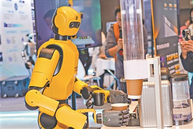 机器人演示咖啡制作。广州日报全媒体记者吴子良摄