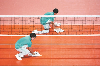 赛场之上,“快擦手”与“滚球妹”守护着比赛的节奏与安全。“快擦手”需在“死球”后至裁判鸣哨前的8秒内,迅速擦拭地面汗渍,一场比赛往返数十次,汗水浸透衣衫也毫无怨言。志愿者邓志乐提前学习手语,以便更好地服务运动员。“滚球妹”李嘉敏等志愿者则化身“球类管家”,仔细擦干每一个球后再传递给运动员,从运动员身上汲取拼搏力量。