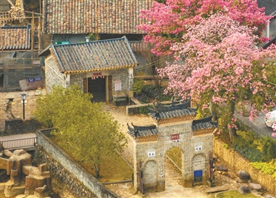 繁花绽放下的美丽村庄。广州日报全媒体记者廖雪明/摄
