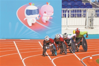 轮椅竞速老将陈晓纯(左一)率先飞驰。广州日报全媒体记者陈忧子摄