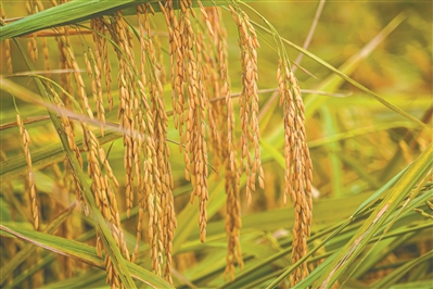 沉甸甸的稻穗“满含丰收的喜悦”。
