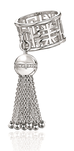 时尚博主任任告诉记者,此次“流苏”也超越波希米亚风情的点缀,成为塑造节奏、质感与情绪的核心媒介,被大规模、高密度地运用。从金属感枝叶流苏到球形夸张流苏,其摇曳形态打破了着装的静态规则,随模特步伐漾出迷人韵律。同时,“马蹄”元素也被升华为核心设计符码。明星彩妆师小斌表示,这一趣味造型为彩妆提供灵感,如Isabel Marant的简约吊坠与耳饰,精准诠释优雅与力量。小斌补充道:“眼妆或唇妆可借鉴镂空精髓,将胭脂色彩与碎钻结合,点缀高级质感。”