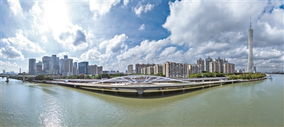 西接广州塔城市客厅、东连琶洲数字经济试验区的黄埔涌步行桥。广州日报全媒体记者苏俊杰 摄