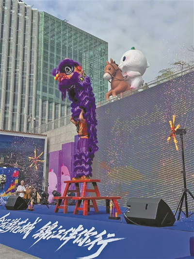 醒狮与吉祥物面对面,带来独特的文旅体验。(资料图片)