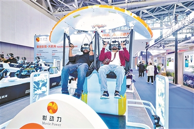 在影动力展位,“乘骑影院—大航海项目”人气很高。观众只要戴上VR眼镜,通过定制化摩托座椅搭配感应式航空安全带,就可开启一段“大航海的旅程”。“既可闻到轻柔花香,也可感受奔涌浪花,还有失重和位移动感,多重体验让人全程沉浸其中。”市民陶女士说。
