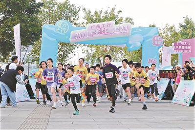 上午8时,个人竞赛组的选手们率先出发。5公里赛道以南海神庙为核心,串联海不扬波牌坊、清代码头遗址等历史遗迹。发令枪响后,选手们如离弦之箭冲出起点,沿着行人绿道奋力奔跑。沿途设置的多个文化打卡点成为互动热点。在广州海事博物馆前,孩子们与馆外陈列的活动展板合影;在波罗庙船厂旧址,家长向孩子讲解古代的造船工艺。