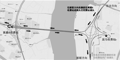 2.东新高速往东沙方向行驶的车辆,可经放马收费站内广场掉头绕行,重新驶入东新高速。