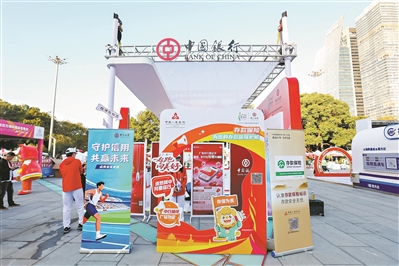 中国银行赛后服务区提供拍照打卡、号码牌塑封等多项服务。