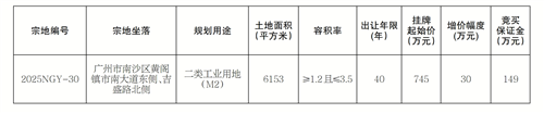 广州市规划和自然资源局南沙区分局2025NGY-30地块国有建设用地使用权网上挂牌出让公告