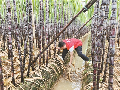 农险服务团队加固甘蔗地竹排。