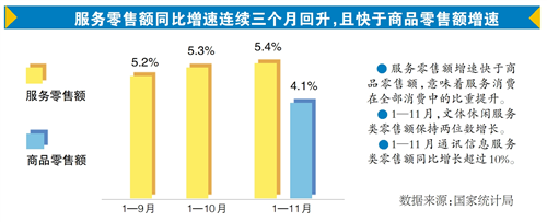 2025年,消费市场在稳健发展中孕育结构性“新芽”。服务消费的活力显著超越商品零售,成为拉动内需的醒目引擎。今年1—11月份,服务零售额增速快于商品零售额,“意味着服务消费在全部消费中的比重提升。”国家统计局新闻发言人付凌晖在答记者问时称。