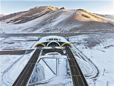 12月26日拍摄的新疆乌尉高速公路天山胜利隧道口(无人机照片)。 新华社发