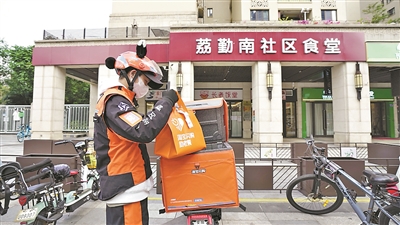 与往日不同的是,这些饭菜不再只等待老人前来堂食,而是被小心装入保温餐箱,由身着橙色制服的“外卖骑士”,为社区的老年人送餐上门。