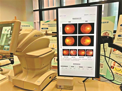 目前,该器械摆放在琶洲实验室的一楼展厅,供参观者进行体验——只需将眼部放于采集设备前,短短几秒便能完成视网膜的扫描。检测结果随即出现在一旁的电脑上,包括糖尿病视网膜病变、青光眼,以及病理性近视等。目前,该套系统已经在广东肇庆、山东潍坊等多个城市上线使用。