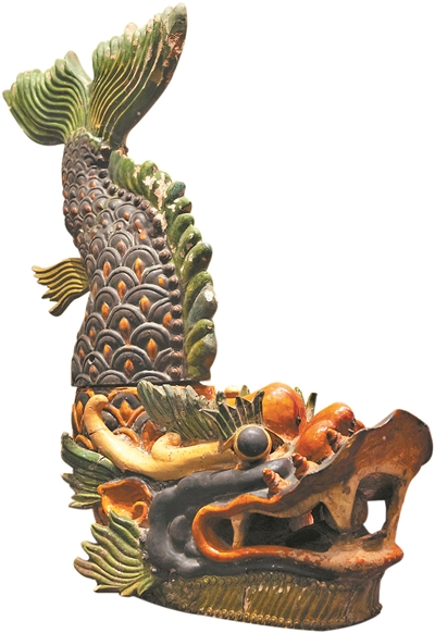 镇海楼(广州博物馆)内陈列的明代石湾窑鳌鱼,原是明万历年间佛山霍氏祠堂屋脊的装饰物。