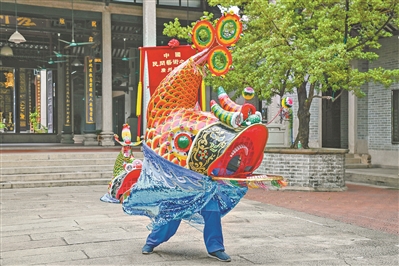 不过,幸泽良对鳌鱼舞的热爱远不止于“守艺”,他更热衷于推陈出新。在幸泽良等沙涌艺人精心改良下,鳌鱼道具从过去的六七十斤变为现在的二十斤左右,大大方便了鳌鱼舞的普及。他还给鳌鱼装上电机,让其能自主摆动,古老的舞蹈契合了现代审美。从村内祠堂到国内各类民间艺术节,幸泽良的表演一次次“震住”观众。他参与创作的新版鳌鱼舞《独占鳌头》,用武术功架舞动鳌鱼,用动作韵律表现情感,在延续传统的同时增强了鳌鱼舞的艺术表现力和特色。2012年,沙涌鳌鱼舞登上韩国丽水世博会的舞台。“我当时就想,一定要让全世界看到我们中国非遗的魅力!”忆起往事,幸泽良依然心潮澎湃。