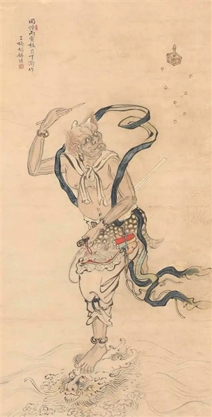 明清时期,岭南士子普遍热衷于供奉“魁星踢斗”图。左图为清末画家胡锡珪所绘,图中,主管文运的魁星一脚稳立于鳌背之上,构成“独占鳌头”的生动画面。