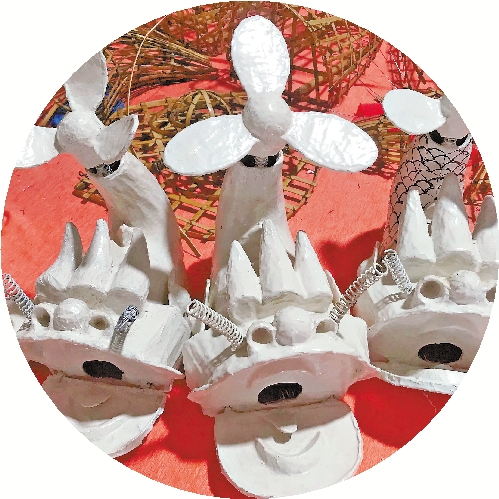幸泽良深知,真正的艺人须通晓全艺。从1973年起,幸泽良跟随他的二哥学习编扎鳌鱼。这是一项极为繁复的工艺。“扎一只鳌鱼,至少26道工序,一道都不能马虎。”他拿起一个竹篾骨架解释道,仅捆绑扎丝就极有讲究——相邻交叉点的缠绕方向必须相反,如此骨架才牢不可破,久用不散。如今,幸泽良成为既能巧手制作、又能纵情起舞的全能手。