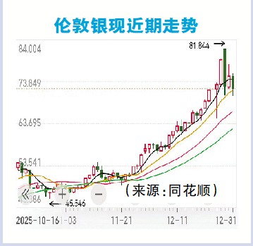 近两周,白银行情犹如“过山车”。2025年12月26日,伦敦银现货大涨10.47%;12月29日,伦敦银现盘中最高冲刺至83.97美元/盎司,但随后高位跳水,全天跌幅达9.08%。多家券商机构提醒,白银的波动率指数处于历史极大值,要警惕超买后的回调风险。