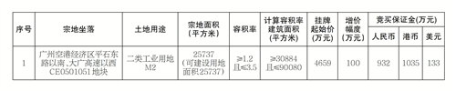 经广州市人民政府授权,广州空港经济区管理委员会以挂牌方式出让1宗地块的国有建设用地使用权。现将有关事项公告如下: