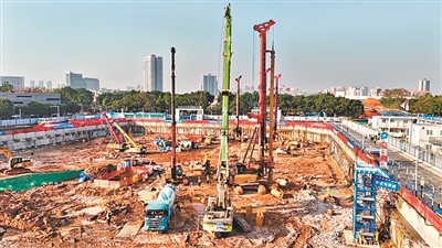 4日上午,记者在三元里村城中村改造项目启动区安置房项目施工现场看到,冬日暖阳下,40余台挖掘机、起重机、土方车等机械设备、车辆正在忙而有序地作业。承建单位中建三局华南公司相关负责人介绍,目前,项目已完成基坑支护,累计约11万方土方外运、工程桩125根,正如火如荼地进行地基处理、土方开挖与桩基础施工。