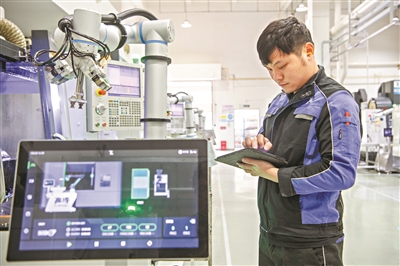 一楼未来车间内,“机器人生产机器人”全自动化生产线高效运转,公司操作员陆观灿早已投入工作。在这位清远小伙身边忙碌的,是里工实业的无人值守机器人“高侍”。“只需要轻轻一点,它就能自动生产机器人的关键零部件,真正实现机器人生产机器人。”陆观灿介绍。